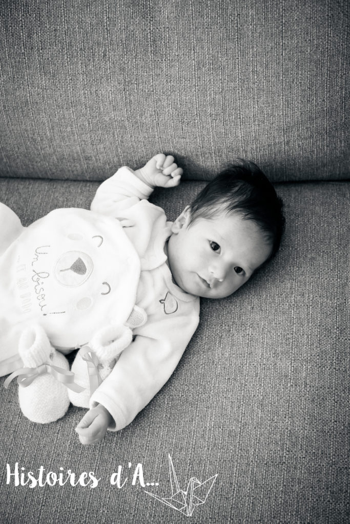 Aymeric n’a pas dormi mais il était apaisé, j’ai pu donc réaliser des portraits de lui tout seul et avec son doudou. Vous voyez cette photo avec ses petites jambes tendues? je l’adore! c’est un petit geste, une attitude tellement typique des bébés que j’aime la photographier!